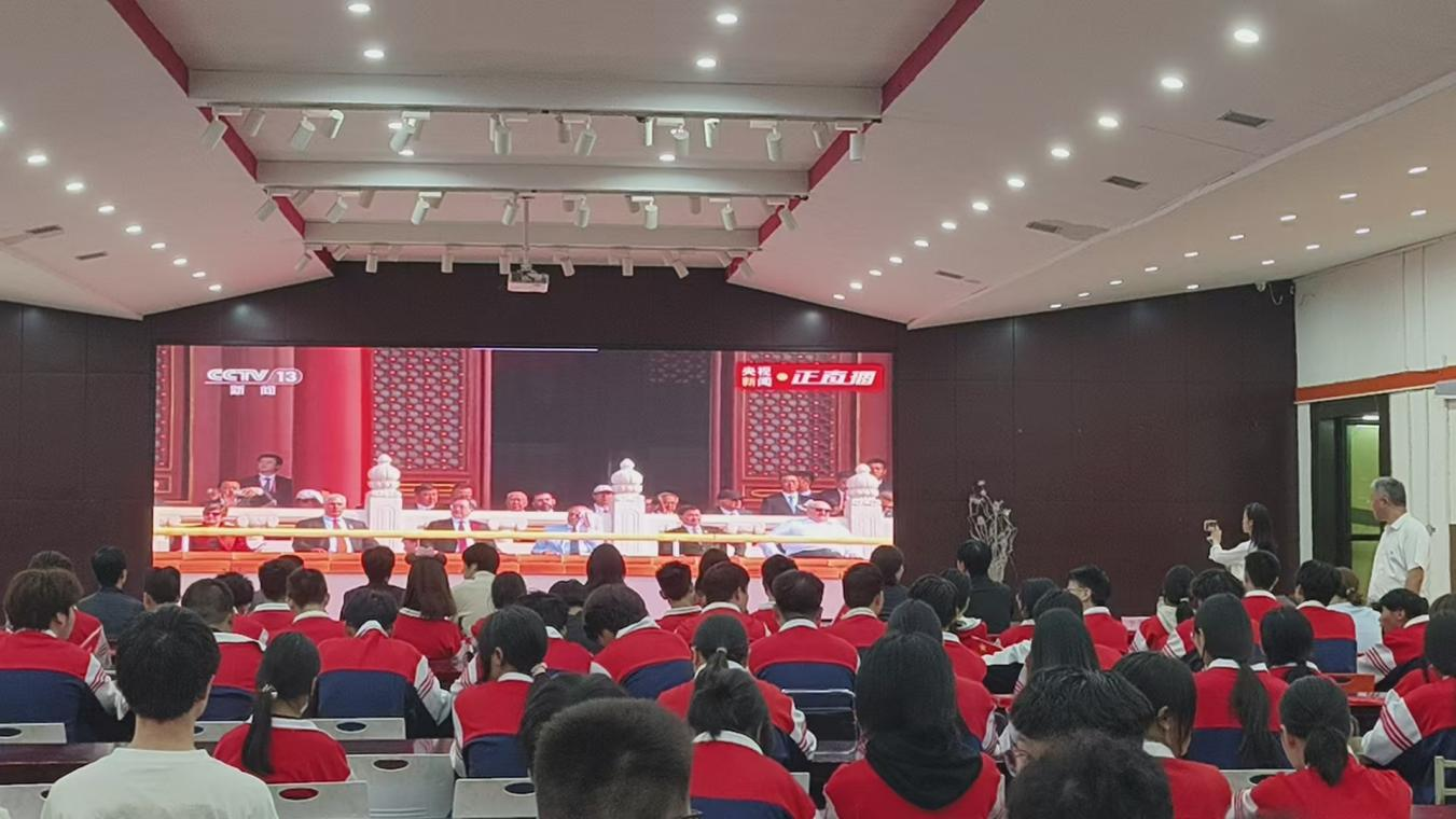 9月3日,物資職校200余名師生代表集中收看紀(jì)念大會實況直播,銘記歷史、緬懷先烈。習(xí)近平總書記的重要講話令學(xué)生備受鼓舞,增強了師生的民族自豪感與集體凝聚力,讓大家更清晰認(rèn)識到自身責(zé)任與使命。全體教師熱情高昂的表示將傳承弘揚愛國主義精神,把抗戰(zhàn)精神融入課堂,牢記育人使命,為強國建設(shè)、民族復(fù)興作貢獻(xiàn)。廣大學(xué)生激情澎湃的表達(dá),將以先輩為榜樣,刻苦學(xué)習(xí)、堅定信念,努力成長為擔(dān)當(dāng)民族復(fù)興大任的時代新人。
